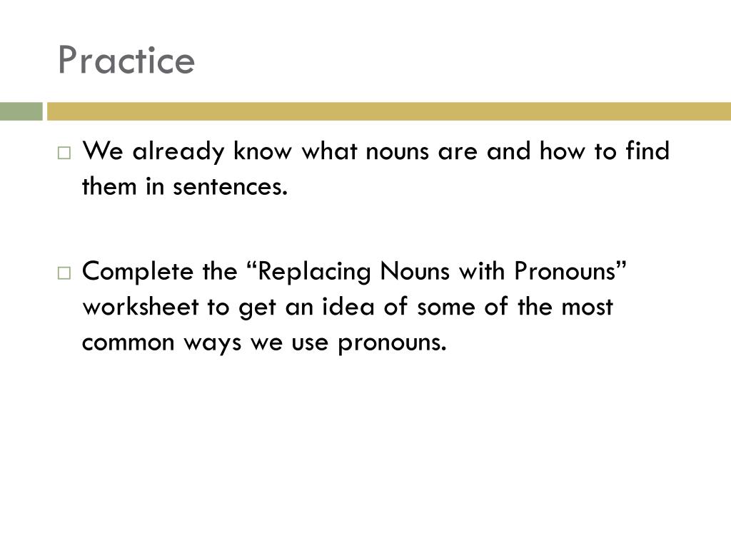 These cards aim to support the use and understanding of pronouns (he, she, they and it). They rewrite the sentences replacing the nouns with pronouns. Then, they will replace the underlined noun or nouns with the correct pronoun and rewrite the sentence on the blank line. Our large collection of ela worksheets are a great study tool for all . We regularly replace nouns with pronouns so that we do not have to repeat the same nouns again and again .
